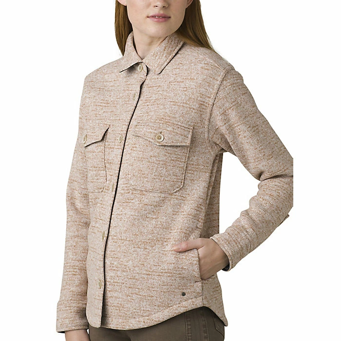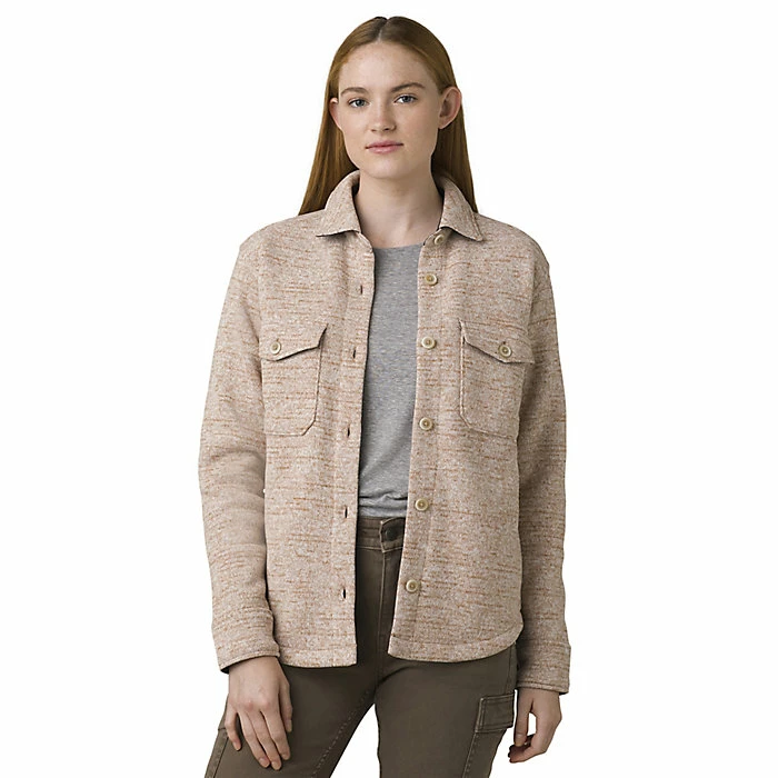 The Prana Women’s Tri Thermal Shaket is a casual jacket for a little warmth around town. The shirt-meets-jacket option that isn’t one nor the other, the in between you crave for the fall season. The Polartec Thermal Pro sweater knit is a recycled polyester and polyester blend, creating a mélange look that is also soft, breathable and warm.